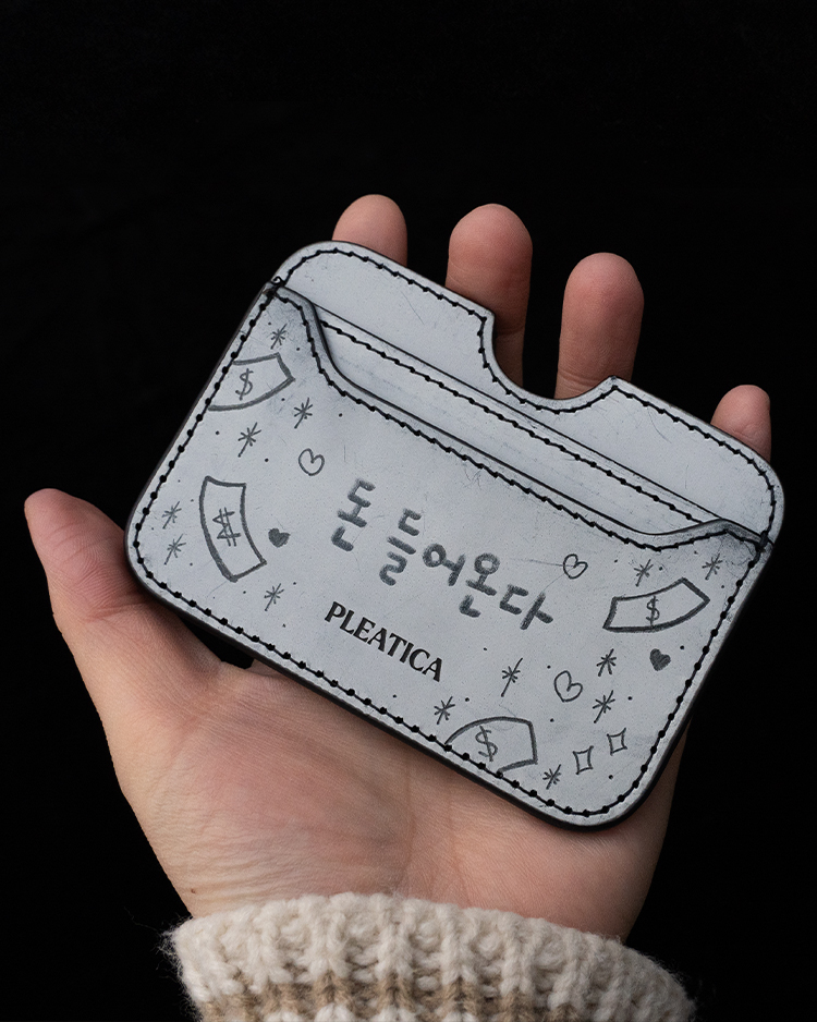 화이트왁스 카드지갑에 캘리그래퍼 지향드림이 직접 손으로 정성껏 캘리그라피를 담아드립니다. 세상에 단 하나뿐인 특별한 감성을 선물하세요.
