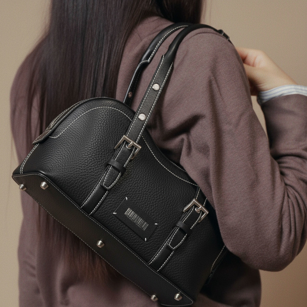 세로형 실루엣과 대비 스티치가 어우러진 절제된 디자인